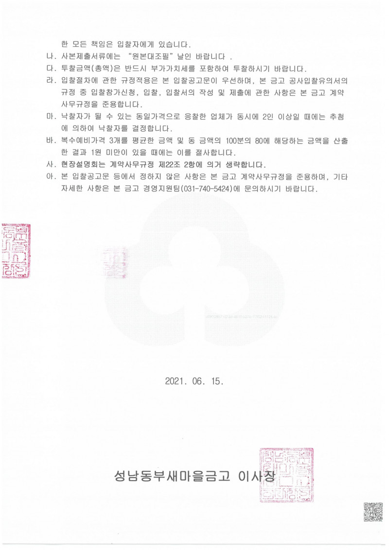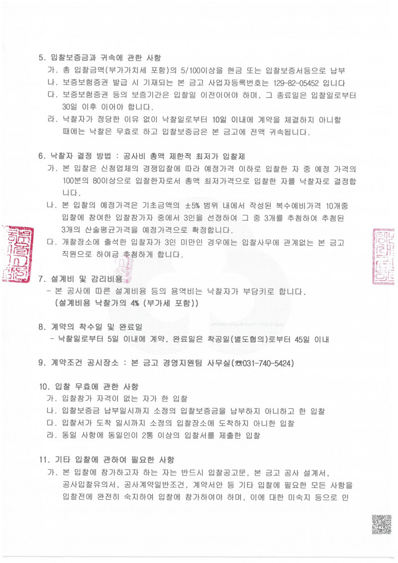공사입찰공고(상대원1동지점)