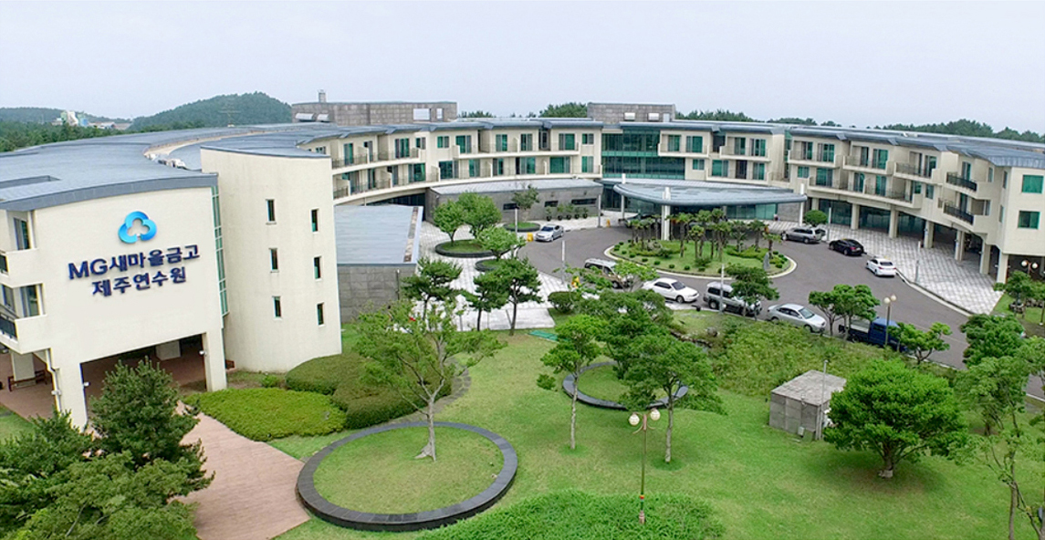 제주도, 한라산이 만들어낸 크고 작은 오름들이 어우러진 천혜의 자연환경에서 자연의 아름다움을 만끽할 수 있는 휴식처 제주시 애월읍 평화로 경마공원 맞은편 4만9천587m2의 부지 위에 리조트동(지상 3층, 지하1층, 전체면적 1만5천634㎡)과 호텔동(지상 3층, 지하1층)의 휴양 및 레포츠, 세미나 등 다양한 시설이 있는 새로운 개념의 휴양형 연수원으로 새마을금고 임직원, 공제계약자 및 회원님들이 연수와 휴식을 자유로이 즐길 수 있습니다. 고급스럽고 다양한 타입의 142실의 객실을 비롯하여 대강당 및 회의실 8실, 풋살장, 농구장(겸 족구장), 식당, 야외이벤트장, 편의점, 노래방,동전세탁실 등의 각종 다양한 부대시설을 갖추고 있는 고품격 휴양형 연수원입니다.